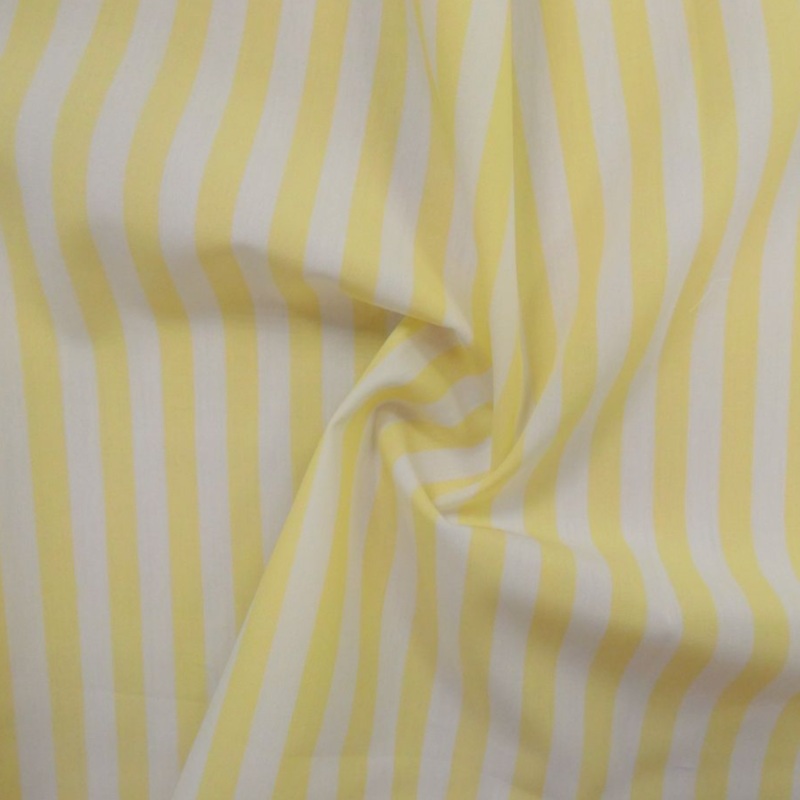 Summery Yellow and WhiteYarn Dyed Stretch Narrow Stripe Ex Designer Paul Smith Shirting FabricIdeal for Dresses, Shirts, Etc.Composition:100% CottonWidth: 130cmWashing Instructions:Price per yard is $20.Price listed is per quarter yard (9" linear), please