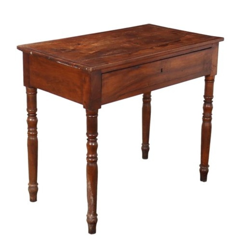 Walnut desk from the late 19th century, supported by four turned legs, with drawer in the band. Production Period Unknown Country of Manufacture Italy Identifying Marks This piece is attributed to the above-mentioned designer/maker. It has no attribution m