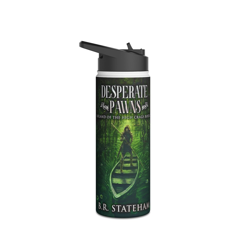 Quench your thirst in style with this 18oz stainless steel water bottle featuring a double-wall stainless steel build that keeps your drinks frosty for 24h and soothingly hot for 12h. This BPA-free, steel water bottle comes with a twist-on lid for easy sipping, making it excellent for daily use at work, at college, in the car, and beyond. The cover art in this water bottle is from B.R. Stateham’s book, Desperate Pawns.