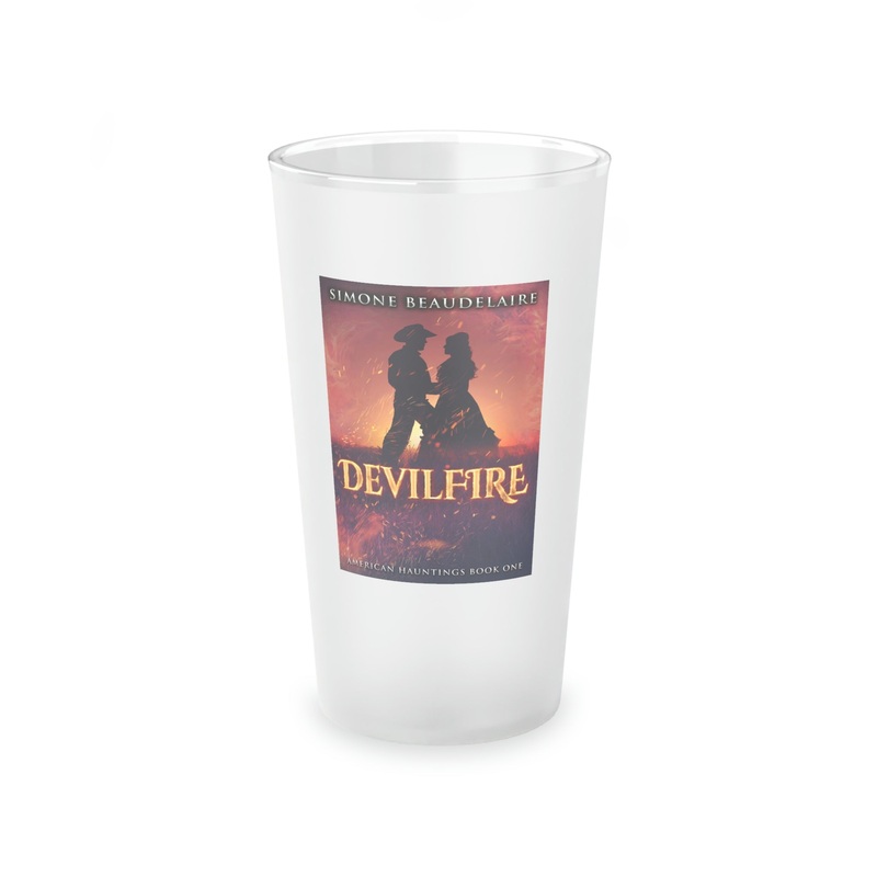 This frosted matte finish pint glass is versatile and dishwasher-safe. The cover art in this pint glass is from Simone Beaudelaire's book, Devilfire.