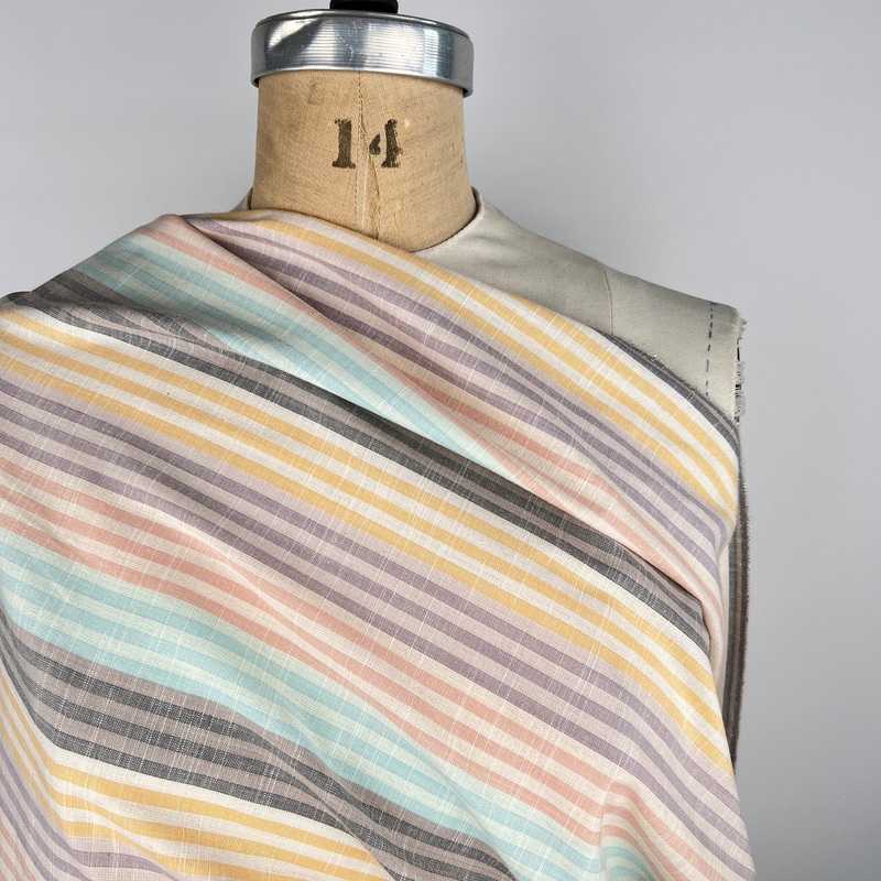 Crisp, medium weightshot cotton stripes. Softens when washed.Suitable for apparel, light home decor projects and quilting.100% cotton / 44/45" wideSee more Diamond Textiles Cabana Stripes here.