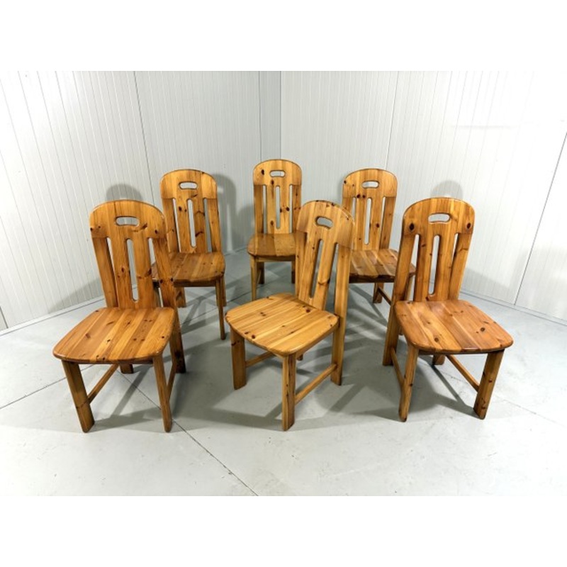 Set of 6 dining chairs by Effezeta, Italy (marked).Pinwood, nice shaped back rests with an easy grip, the seats arecomfortable because they are preformed.1970s. In very good condition with minimal wear of use/age. Manufacturer Effezeta Design Period 1970 t