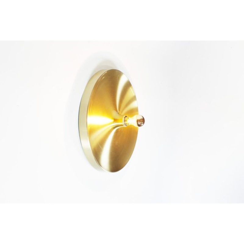 Iconic disc lamp by Honsel, known because they were selected by Charlotte Perriand to be used in Les Arcs. In good and fully original condition. No damages to the metal, some normal signs like scratches due to age. Lamp takes 1x E27 bulb in the middle. The electricity has been replaced to modern standards.