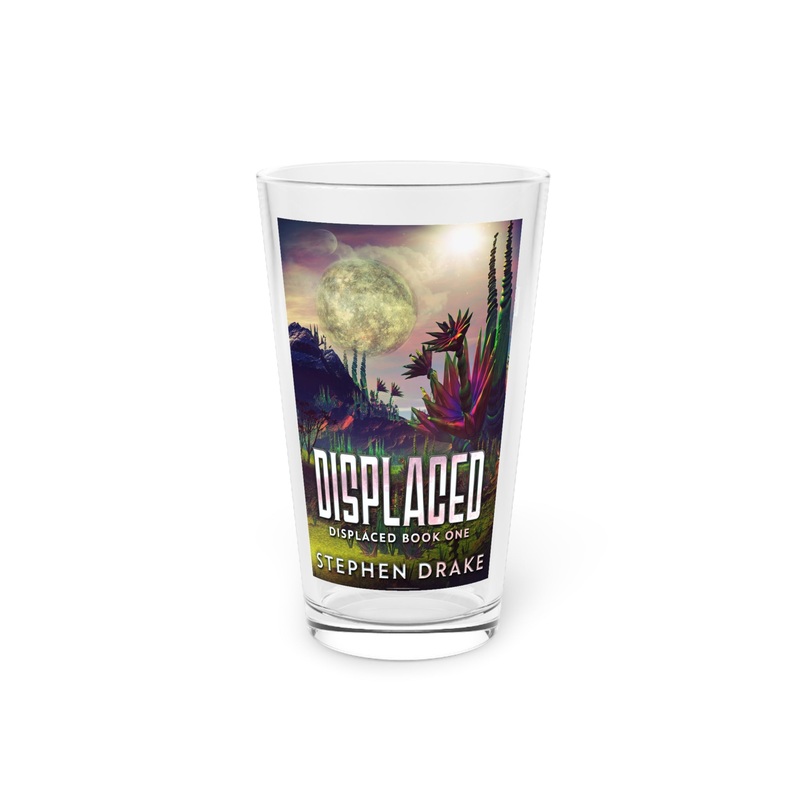 Nothing can replace a pint glass except for another pint glass. These long and transparent glasses are highly versatile, can make for a great housewarming gift, and are bound to be used in any household. The cover art on this pint glass is from Stephen Drake’s book, Displaced.