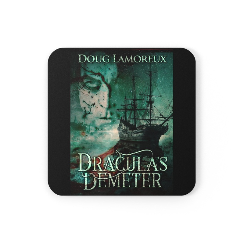 These coasters are made with a high-gloss top and feature a cork back to prevent sliding, and each order comes with a set of four coasters. The cover art in these coasters is from Doug Lamoreux’s book, Dracula’s Demeter.
