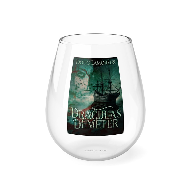 Whether it’s weddings, parties, or beautiful evenings with friends and family, this stemless glass wine fits right in. With its sleek design, each glass holds 11.75oz of your favorite wine. The cover art in this wine glass is from Doug Lamoreux’s book, Dracula’s Demeter.