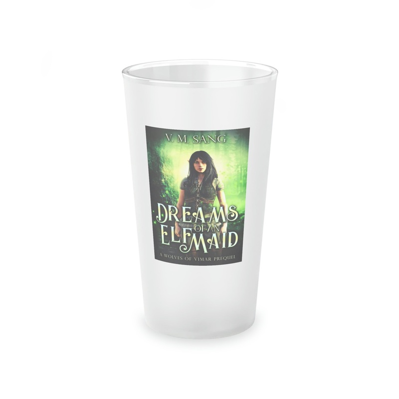 This frosted matte finish pint glass is versatile and dishwasher-safe. The cover art in this pint glass is from V.M. Sang's book, Dreams Of An Elf Maid.
