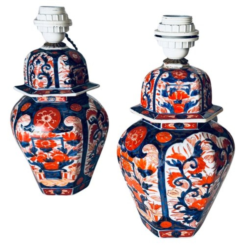 This exquisite pair of Japanese table lamps from the early 20th century showcases timeless elegance with classic floral and vegetal motifs. Their vibrant orange and blue colors are instantly recognizable and add a touch of richness and warmth to any interior. Perfectly preserved and functional, these lamps are a beautiful blend of traditional Japanese artistry and versatile design. Key features include: Traditional Japanese Design: Featuring intricate floral patterns and lush vegetal motifs, these lamps reflect the elegance and symbolism typical of Japanese decorative arts. Vibrant Color Palette: The vivid orange and blue hues are both eye-catching and harmonious, bringing a warm, inviting glow to any space. Compact Size and Versatility: These lamps are small in size, making them ideal for use as bedside lamps, accent lighting, or decorative pieces on consoles and side tables. Adaptability: They are in excellent condition and will be delivered with an adapter for US electrical outlets. Please note that the lamps are sold without lampshades, allowing for customization to match any decor style. Timeless Appeal: Their vibrant colors and classic Japanese design make them suitable for a wide range of interiors, from modern minimalist to traditional or eclectic settings. Historical Charm: As pieces from the early 20th century, they bring a sense of history and cultural elegance, making them a perfect addition for collectors and interior design enthusiasts. This pair of Japanese table lamps is not just functional lighting but also artistic and cultural artifacts. Their vibrant color scheme and elegant floral design add a touch of luxury and tradition to any room, enhancing both modern and vintage interiors. Keywords: Early 20th-century Japanese lamps, vintage floral table lamps, orange and blue Japanese lighting, traditional Japanese decor, antique Japanese table lamps, vibrant oriental lamps, collectible Japanese lighting, Asian floral motif lamps. Note: An electrical plug adapter for U.S. outlets is included. Lampshade not provided.