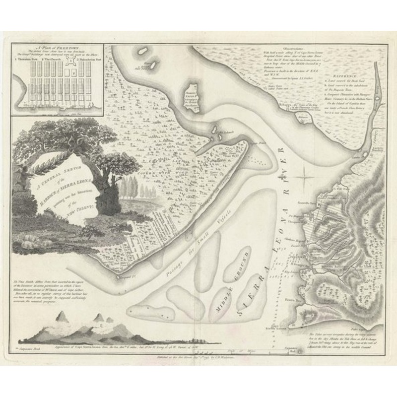 Dimensions320 265 mmCartographerWADSTROM, Carl Bernard.Date1795Extra InfoA General Sketch of the Harbour of Sierra Leona, pointing out the Situation of the New Colony.PublicationLondon: Harvey and Darton for Wadstrom, 1795. 265 x 320mm.ConditionA good example.