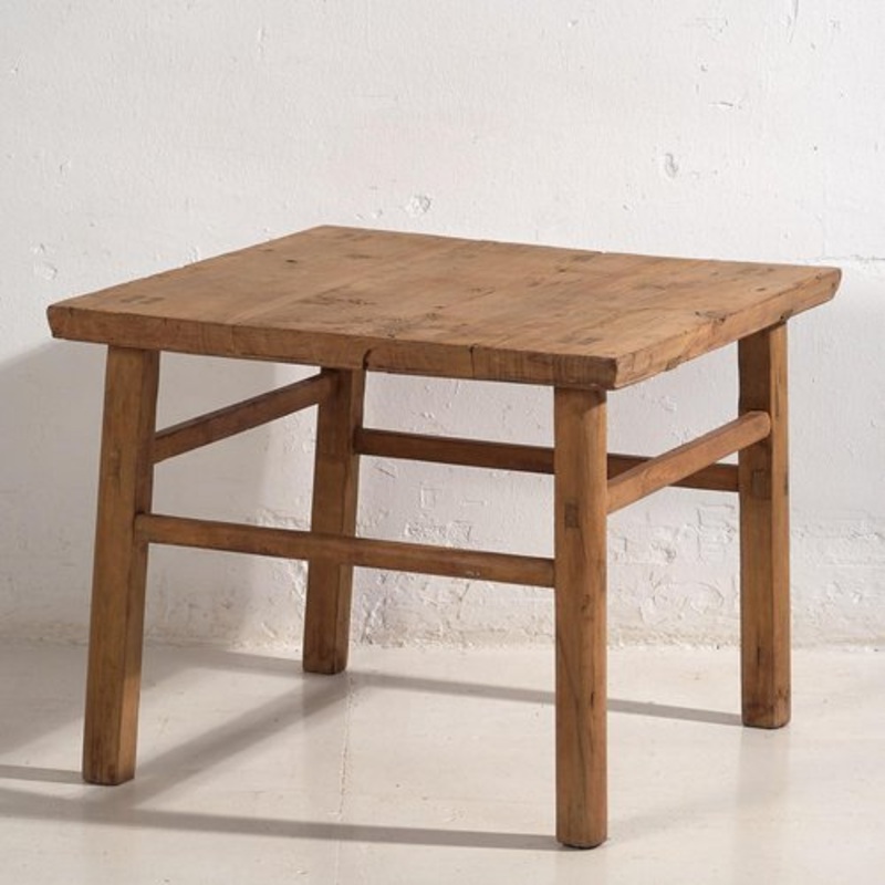 Antique coffee table (c.1900) Dimensions: Width: 70 cm Depth: 68 cm Height: 55 cm Style: Qing Materials and techniques: Elm wood Place of origin: Imperial China Epoch: Early twentieth century Date of manufacture: Around 1900 Condition: Good. Wear consistent with age and use. Our antique coffee table is a unique piece that stands out for: Its elm wood exhibits the marks and wounds accumulated by its centennial use that make it unique. Its wabisabi style blends seamlessly into a variety of contemporary settings. The state of conservation is optimal, except for the characteristic imperfections of any antique furniture due to the course of the years. Give a point of originality to your home with a unique piece, which merges with the contemporary style bringing personality to your home. This wooden table can be combined with any of our TV furniture or with our available antique stools . UNIQUE PIECE
