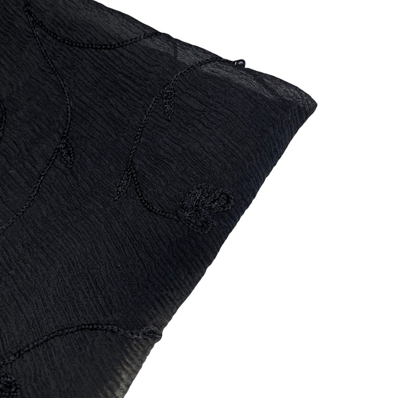 Embroidered Beaded Crinkled Silk Chiffon – Black Per Half Yard
