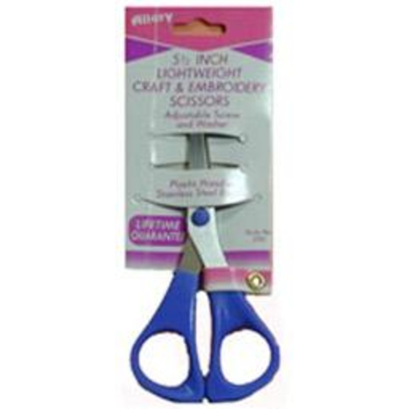 Embroidery Scissors 5.5" in Blue designed by Allary ALY-200Craft and hobby scissors designed for precision and ease. Features an adjustable screw and washer for customizable tension control. Ergonomic comfort-grip handles reduce hand fatigue during extende