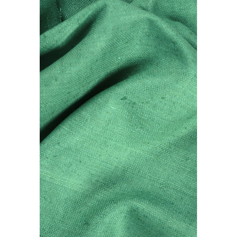 Silk Linen, also referred to as Silk Matka, is a distinctive, medium-weight 100% silk fabric. Matka, defined, means "rough, hand-loomed" and originates from a thick yarn. It has a "knobby" linen texture. The Emerald Green Silk Linen (Matka) Fabric is ideal
