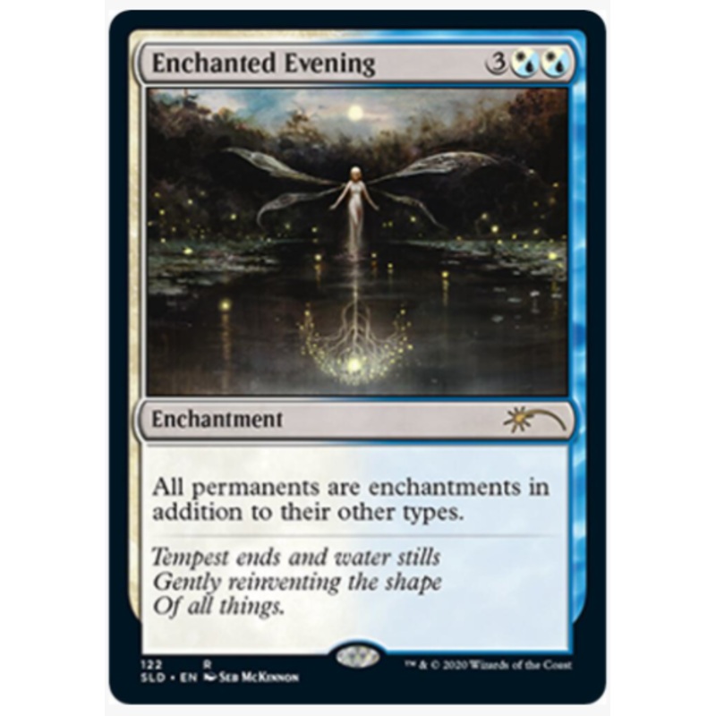 All permanents are enchantments in addition to their other types.Rarity:R#:122Card Type:EnchantmentFlavor:Tempest ends and water stills Gently reinventing the shape Of all things.Casting Cost: 3(W/U)(W/U)
