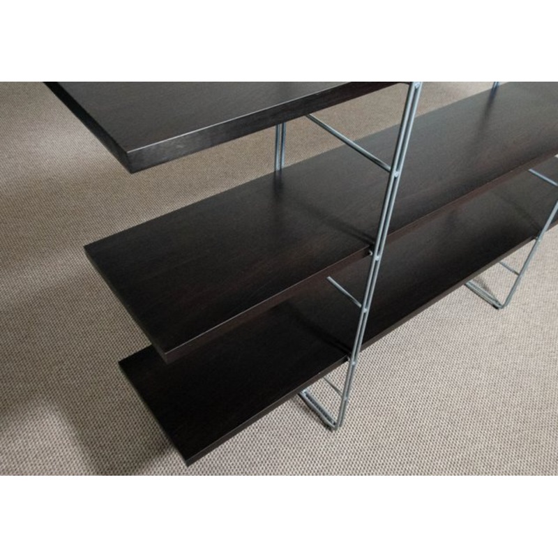 Designed by Niels Gammelgaard for IKEA in the 1980s, the 'Enetri' bookcase is a sleek and minimalist storage solution.Materials: Walnut shelves with a lightweight yet sturdy metal frameVersatile Design: Functions as both a bookcase and a room dividerScandi