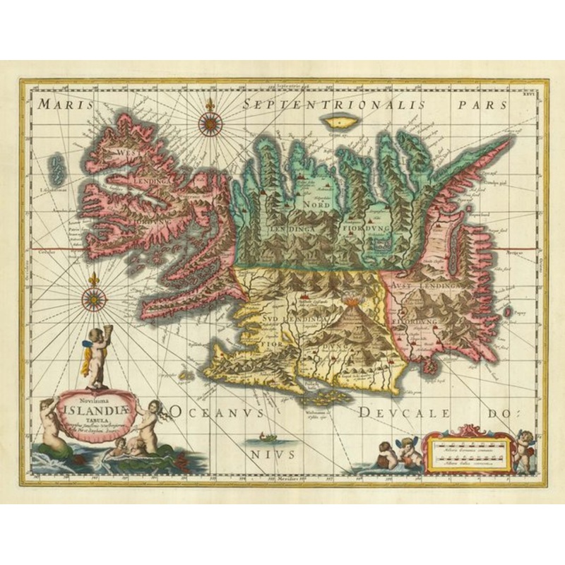 Novissima Islandiae Tabula. Sumptimus Janssonio-Waesbergiorum, Moses Pitt et Stephani Swart.PublicationOxford: Moses Pitt, Steven Sward and Johannes Jansson a Waesberge, 1680, blank verso. Coloured. 380 x 500mm.