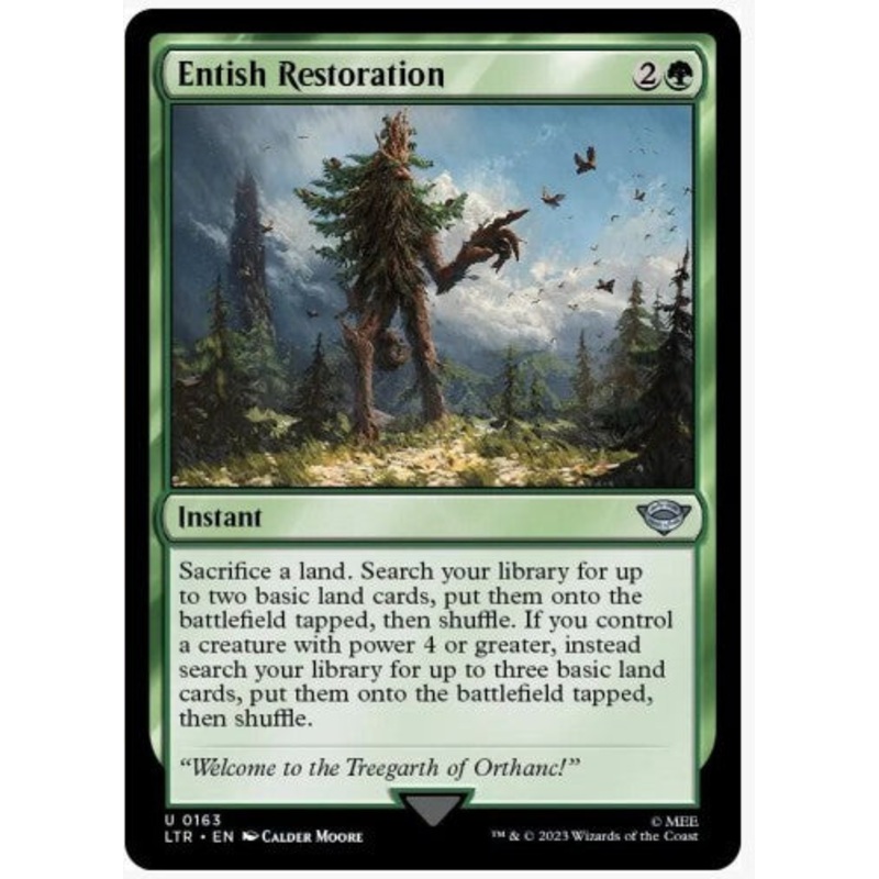 Sacrifice a land. Search your library for up to two basic land cards, put them onto the battlefield tapped, then shuffle. If you control a creature with power 4 or greater, instead search your library for up to three basic land cards, put them onto the battlefield tapped, then shuffle.