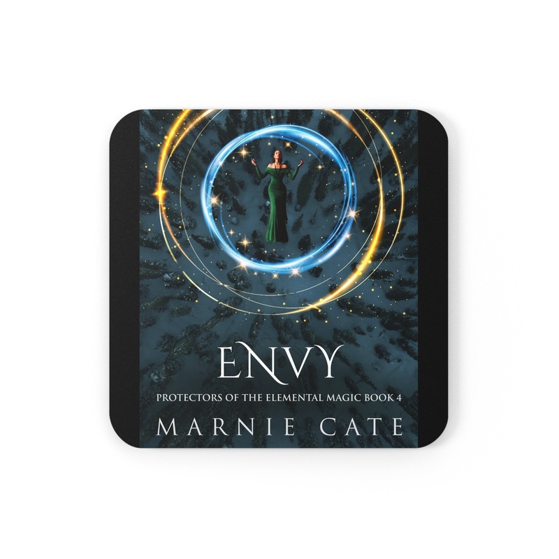 These coasters are made with a high-gloss top and feature a cork back to prevent sliding, and each order comes with a set of four coasters. The cover art in these coasters is from Marnie Cate's book, Envy.