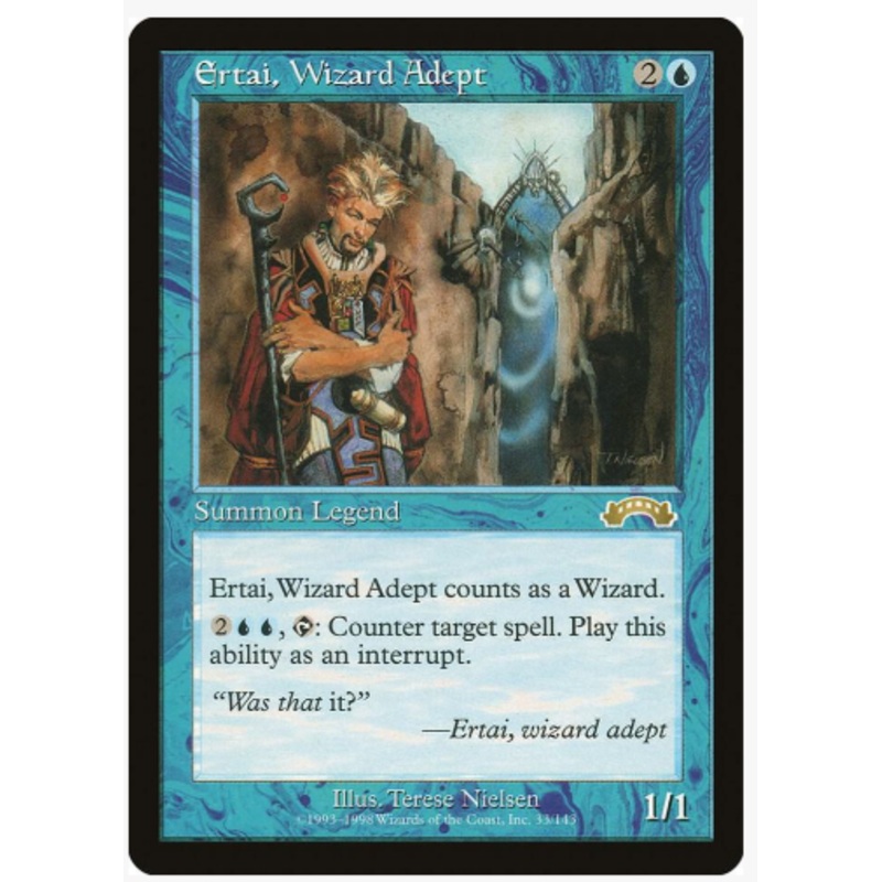 Ertai, Wizard Adept counts as a Wizard.2UU, T: Counter target spell. Play this ability as an interrupt.Rarity:R#:33Card Type:Summon LegendP / T:1 / 1Flavor:"Was thatit?"Ertai, wizard adeptCasting Cost: 2U