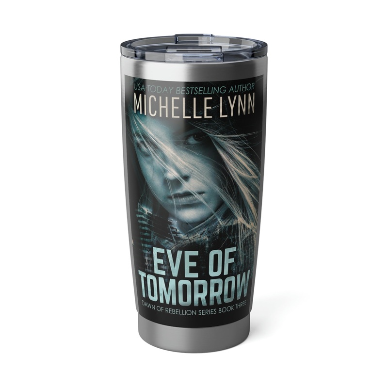 Minimize your plastic footprint with style. This tumbler fits perfectly into car cup holders, and the rubber gasket makes it spill-resistant on bumpier roads. The double-wall insulation makes sure drinks stay at the right temperature until the next pit stop. The cover art in this 20 oz tumbler is from Michelle Lynn’s book, Eve of Tomorrow.