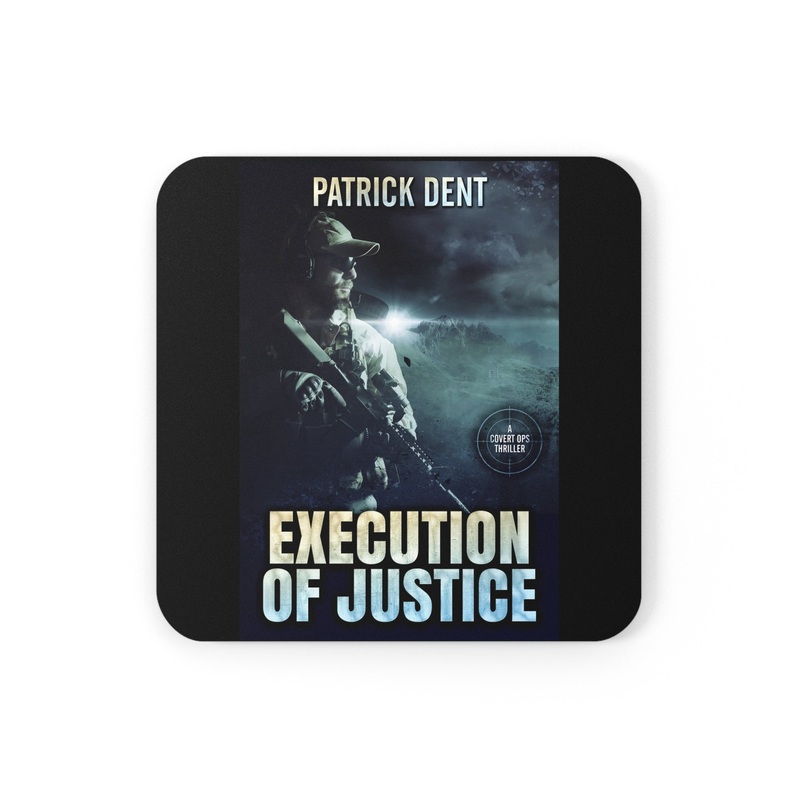 These coasters are made with a high-gloss top and feature a cork back to prevent sliding, and each order comes with a set of four coasters. The cover art in these coasters is from Patrick Dent's book, Execution of Justice.