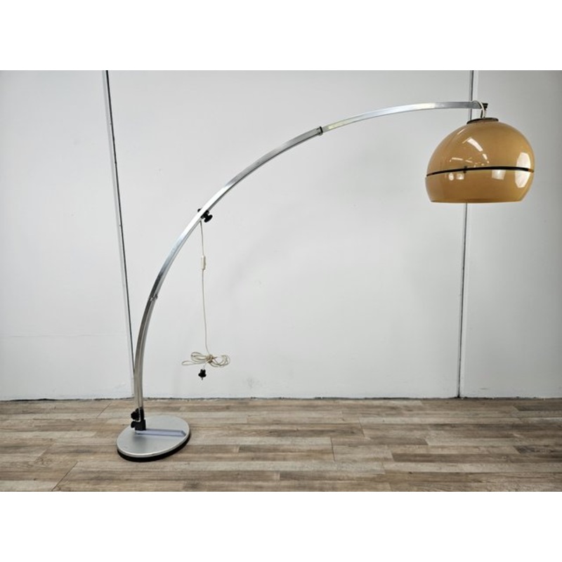 Modern 70s floor lamp with extendable chromed metal structure and cast iron base.