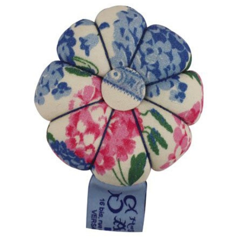 With a cute pumpkin shape, this pin cushion is hand made with Sajou's Hydrangea fabric. It is tightly stuffed to make it easy to pick both pins and needles with a small button on both the top and bottom.Completely hand made in a small workshop just around