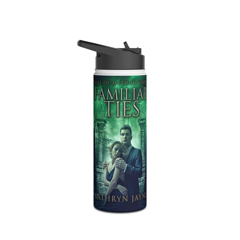 Quench your thirst in style with this 18oz stainless steel water bottle featuring a double-wall stainless steel build that keeps your drinks frosty for 24h and soothingly hot for 12h. This BPA-free, steel water bottle comes with a twist-on lid for easy sipping, making it excellent for daily use at work, at college, in the car, and beyond. The cover art in this water bottle is from Kathryn Jayne’s book, Familiar Ties.
