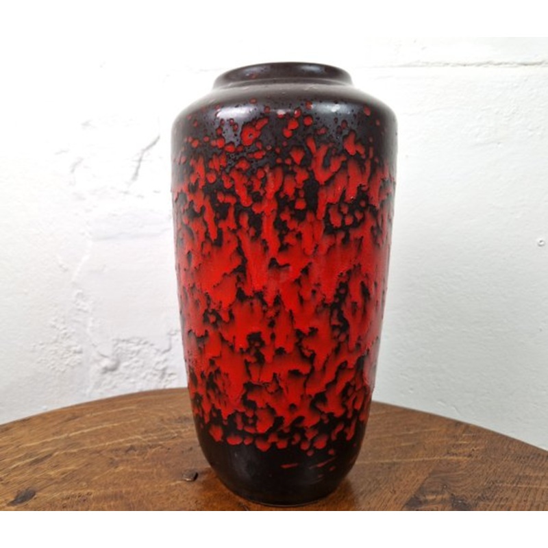 Really handsome floor vase by Scheurich, made in Germany in the 1970s. The fat lava glazing is a striking red on a deep bronzy brown base color. Great condition. Manufacturer Scheurich Keramik Design Period 1970 to 1979 Production Period 1970 to 1979 Count