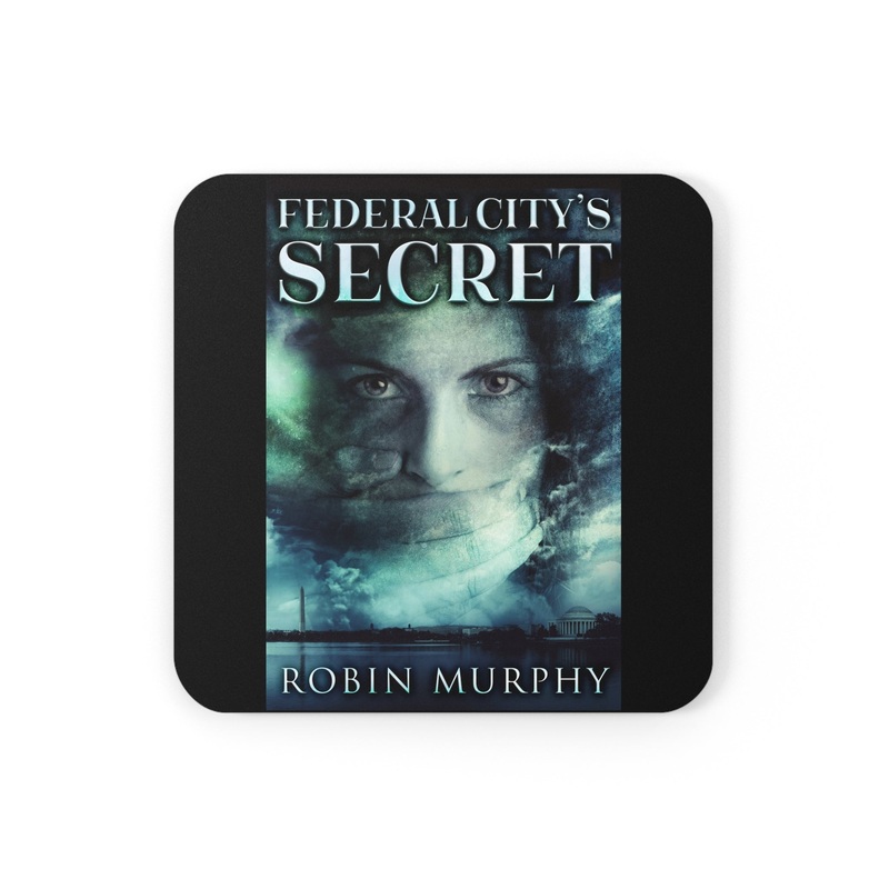 These coasters are made with a high-gloss top and feature a cork back to prevent sliding, and each order comes with a set of four coasters. The cover art in these coasters is from Robin Murphy’s book, Federal City’s Secret.