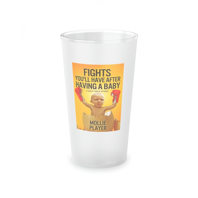 This frosted matte finish pint glass is versatile and dishwasher-safe. The cover art in this pint glass is from Mollie Player's book, Fights You'll Have After Having A Baby.