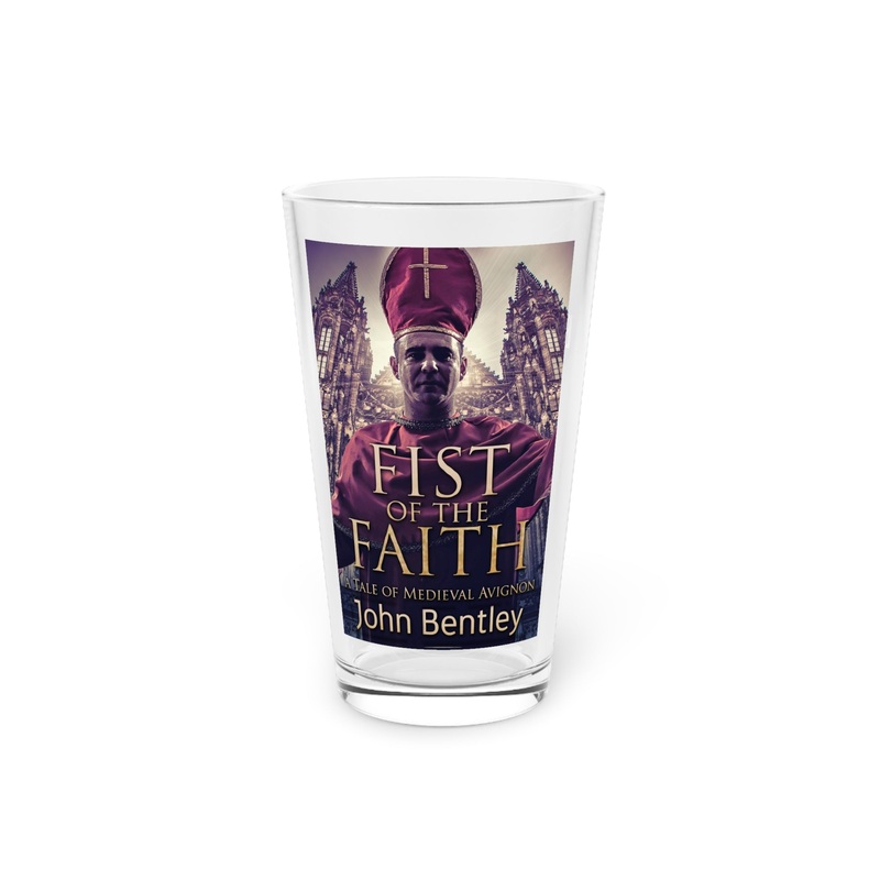 Nothing can replace a pint glass except for another pint glass. These long and transparent glasses are highly versatile, can make for a great housewarming gift, and are bound to be used in any household. The cover art on this pint glass is from John Bentley’s book, Fist Of The Faith.