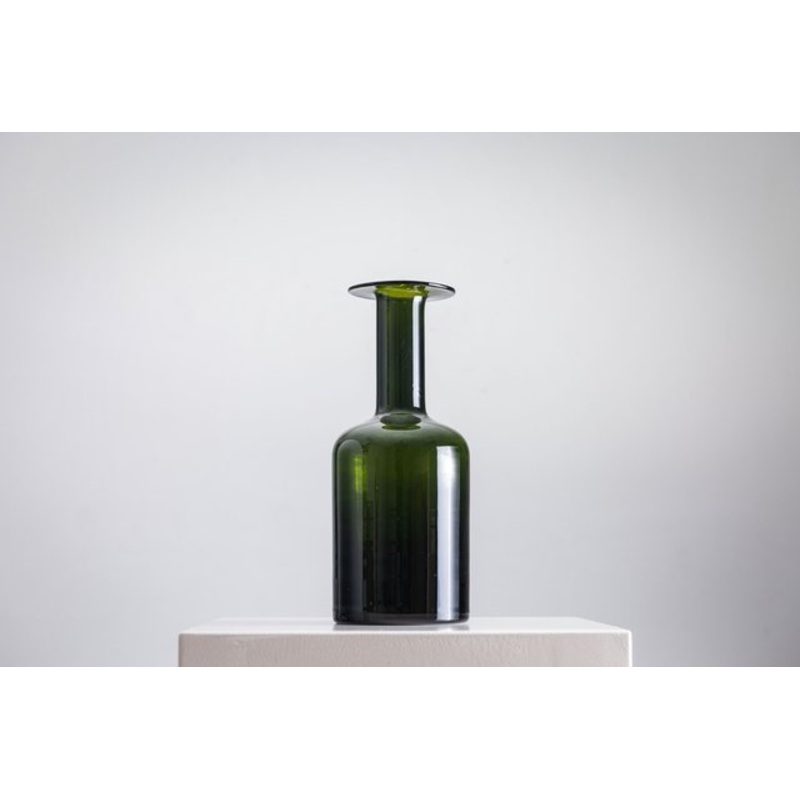 Introducing the stunning Gulv vase, a true masterpiece of mid-century design, meticulously crafted by the renowned Danish designer Otto Brauer for Holmegaard. This dark green vintage vase, with its elegant, organic curves, embodies the perfect fusion of fu