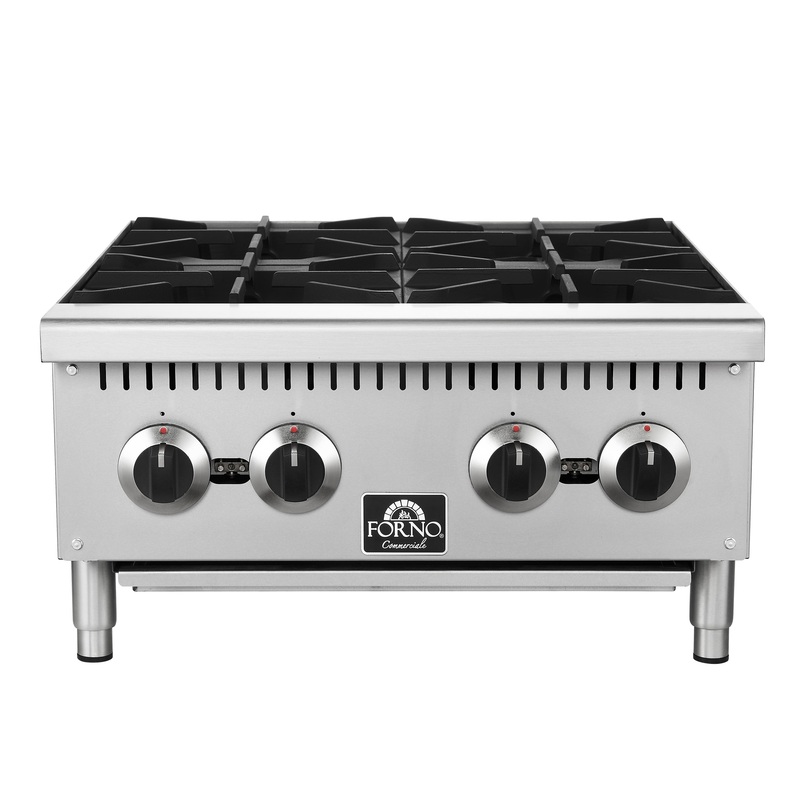 FORNO Commerciale 24″ Gas Hot Plate, 4 Burners (100,000 BTU) with Cast Iron Grates and 430 Stainless Steel Body, FCMHP0079-24