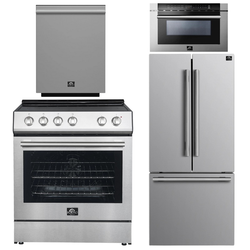 OO621835297529FORNO Espresso Package - 30" Electric Range, 30" Refrigerator with Ice Maker, Dishwasher and 24" Microwave Drawer in Stainless Steel