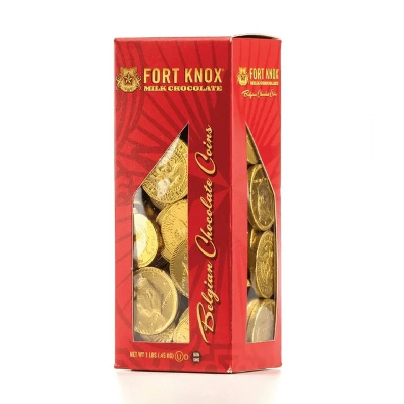 The "Fort Knox Milk Chocolate Belgium Chocolate Coins 1lb Tower Box" is a delightful and indulgent treat that features milk chocolate coins made in the Belgian chocolate tradition. This tower box contains one pound of these delicious chocolate coins, perfe