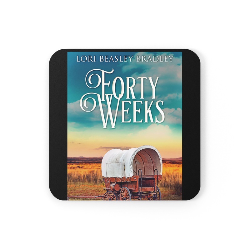 These coasters are made with a high-gloss top and feature a cork back to prevent sliding, and each order comes with a set of four coasters. The cover art in these coasters is from Lori Beasley Bradley’s book, Forty Weeks.