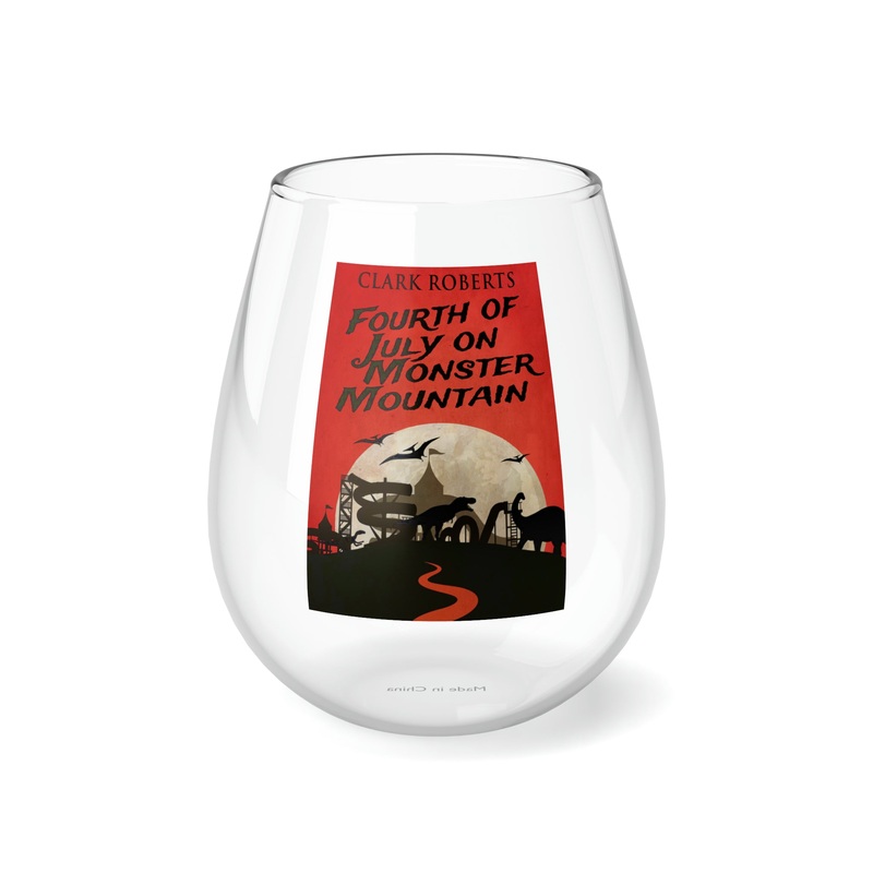 Whether it’s weddings, parties, or beautiful evenings with friends and family, this stemless glass wine fits right in. With its sleek design, each glass holds 11.75oz of your favorite wine. The cover art in this wine glass is from Clark Roberts’s book, Fourth of July on Monster Mountain.