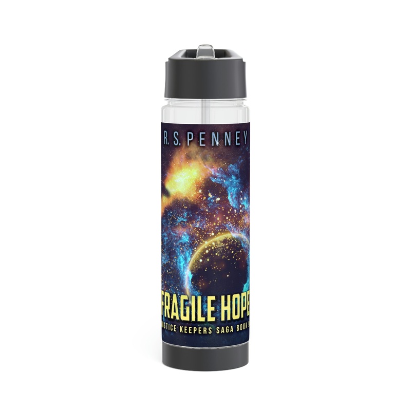 Add flavor and personality to your water with this infuser bottle. Twist the base off to access the infuser and add fruits, tea leaves, or anything you desire to enhance the flavor of your water. On the top, you’ll find a twist-on lid with a flip-top drinking sprout for a seamless drinking experience. This infuser is excellent for using at home, during outdoor excursions, or at the gym as a sports bottle. The cover art in this infuser water bottle is from R.S. Penney’s book, Fragile Hope.
