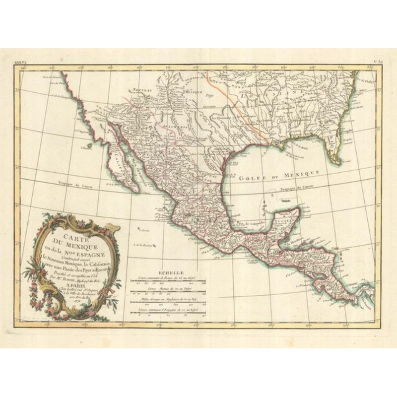 Map of Mexico or New Spain Also containing New Mexico, California, with part of the adjacent countries.... Paris: Jean Lattr?, 1771. Old color. 310 x 430mm. A map of Mexico, but showing North America as far north as Chesapeake Bay and south to Panama, with