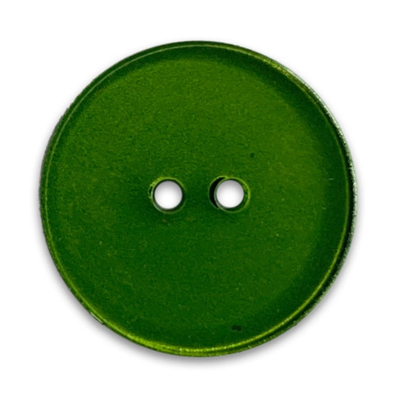 A flat 2-hole plastic button in subtly frosted shamrock green. Made in Italy.