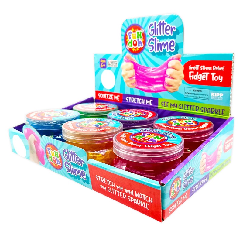 Unleash your inner child with our Fun Doh Glitter Slime! This sparkly, squishy fidget toy is perfect for relieving stress and keeping your hands busy. Squeeze and stretch to your heart's content! WHOLESALE BULK ITEM