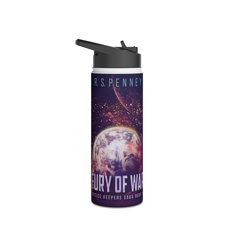 Quench your thirst in style with this 18oz stainless steel water bottle featuring a double-wall stainless steel build that keeps your drinks frosty for 24h and soothingly hot for 12h. This BPA-free, steel water bottle comes with a twist-on lid for easy sipping, making it excellent for daily use at work, at college, in the car, and beyond. The cover art in this water bottle is from R.S. Penney’s book, Fury Of War.