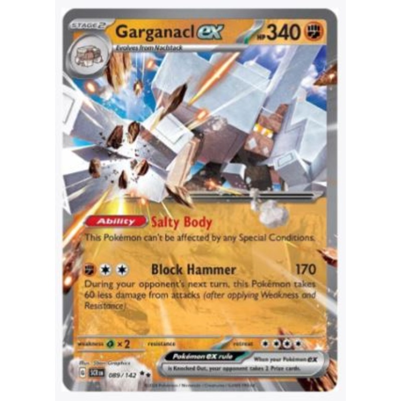 Card Number / Rarity:089/142 / Double RareCard Type / HP / Stage:Fighting / 340 / Stage 2Card Text:Ability: Salty BodyThis Pokmon can't be affected by any Special Conditions.Attack 1:[FCC] Block Hammer (170)During your opponent's next turn, this Pokmon tak