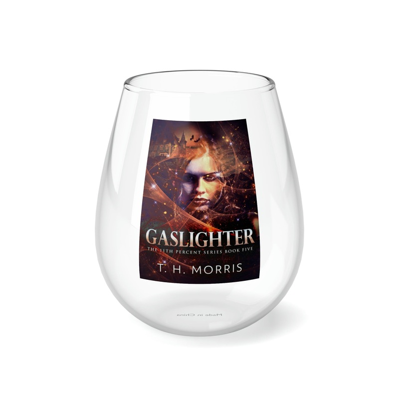 Whether it’s weddings, parties, or beautiful evenings with friends and family, this stemless glass wine fits right in. With its sleek design, each glass holds 11.75oz of your favorite wine. The cover art in this wine glass is from T.H. Morris’s book, Gaslighter.