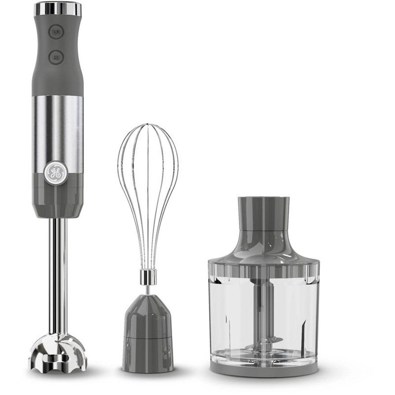 GE immersion blender with accessories features 500 watts of power and 2 speeds. Simple to clean and use, this versatile dual-speed hand blender switches smoothly from low to high speed, so you can blend all your food and drink recipes with ease.