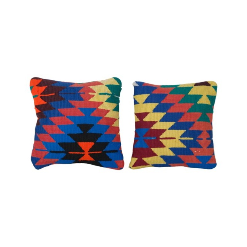 Elevate your home decor with these exquisite 12″” x 12″” pillow covers crafted from authentic vintage Turkish rugs, handwoven in the 1960s. The rich and vibrant woolen colors on the front of each pillow are a testament to the artistry of Turkish craftsmanship. These cushions add a touch of elegance and nostalgia to any couch, chair, or bed.