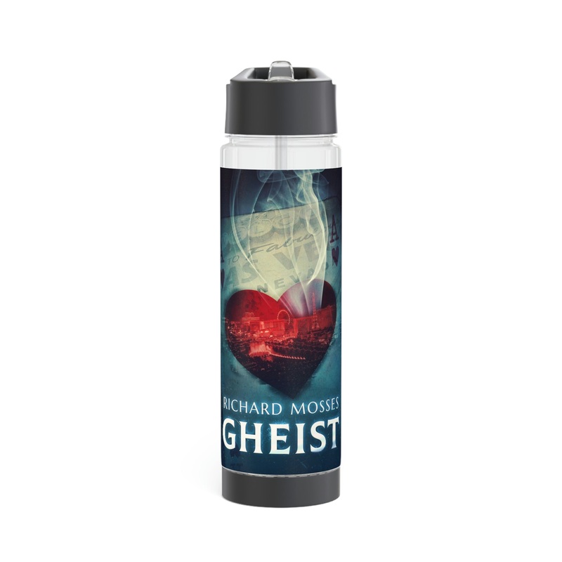 Add flavor and personality to your water with this infuser bottle. Twist the base off to access the infuser and add fruits, tea leaves, or anything you desire to enhance the flavor of your water. On the top, you’ll find a twist-on lid with a flip-top drinking sprout for a seamless drinking experience. This infuser is excellent for using at home, during outdoor excursions, or at the gym as a sports bottle. The cover art in this infuser water bottle is from Richard Mosses’s book, Gheist.