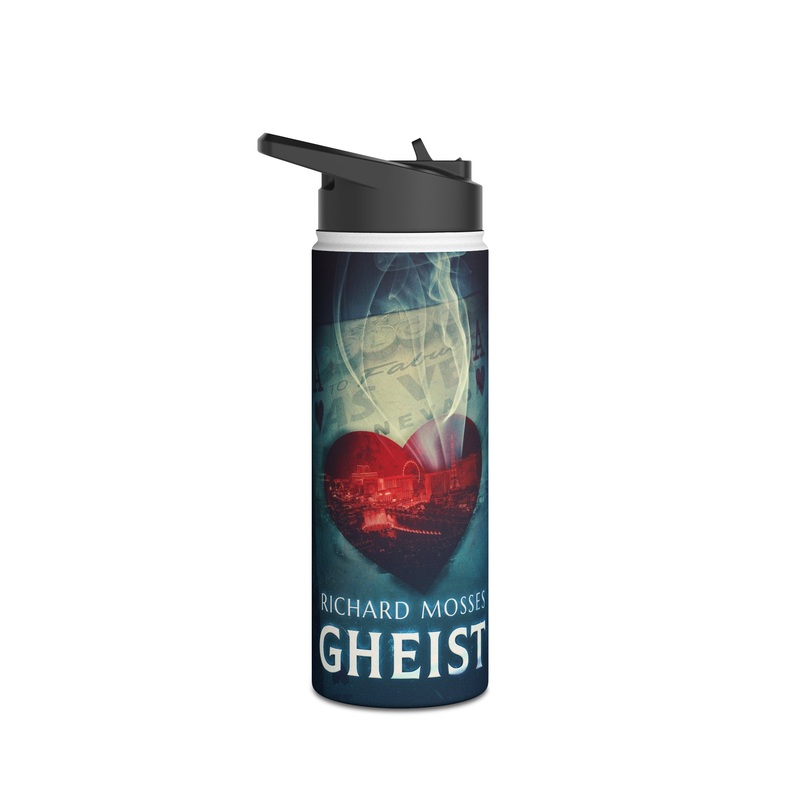 Quench your thirst in style with this 18oz stainless steel water bottle featuring a double-wall stainless steel build that keeps your drinks frosty for 24h and soothingly hot for 12h. This BPA-free, steel water bottle comes with a twist-on lid for easy sipping, making it excellent for daily use at work, at college, in the car, and beyond. The cover art in this water bottle is from Richard Mosses’s book, Gheist.