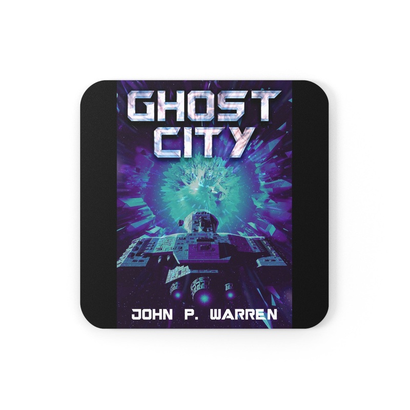 These coasters are made with a high-gloss top and feature a cork back to prevent sliding, and each order comes with a set of four coasters. The cover art in these coasters is from John P. Warren's book, Ghost City.